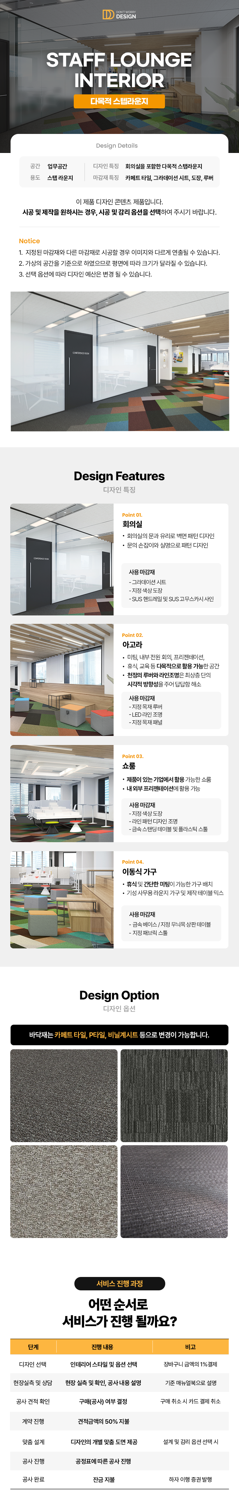 아고라, 쇼룸, 회의실, 애자일 등 여러 기능이 함께 있는 다목적 스탭라운지를 원하는 기업을 위한 디자인 제안