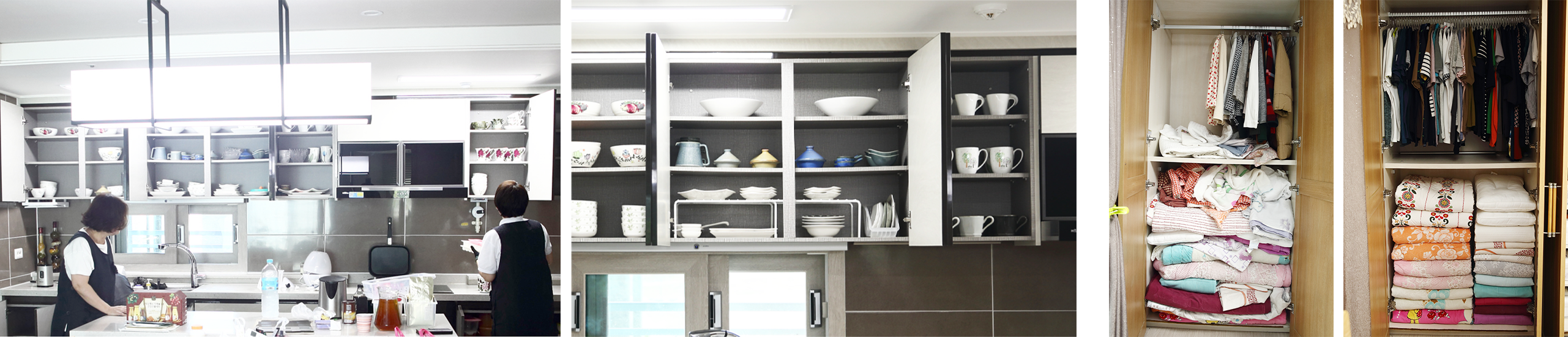 *왼쪽부터 주방 정리 전 후, 옷장 정리 전 후 비교